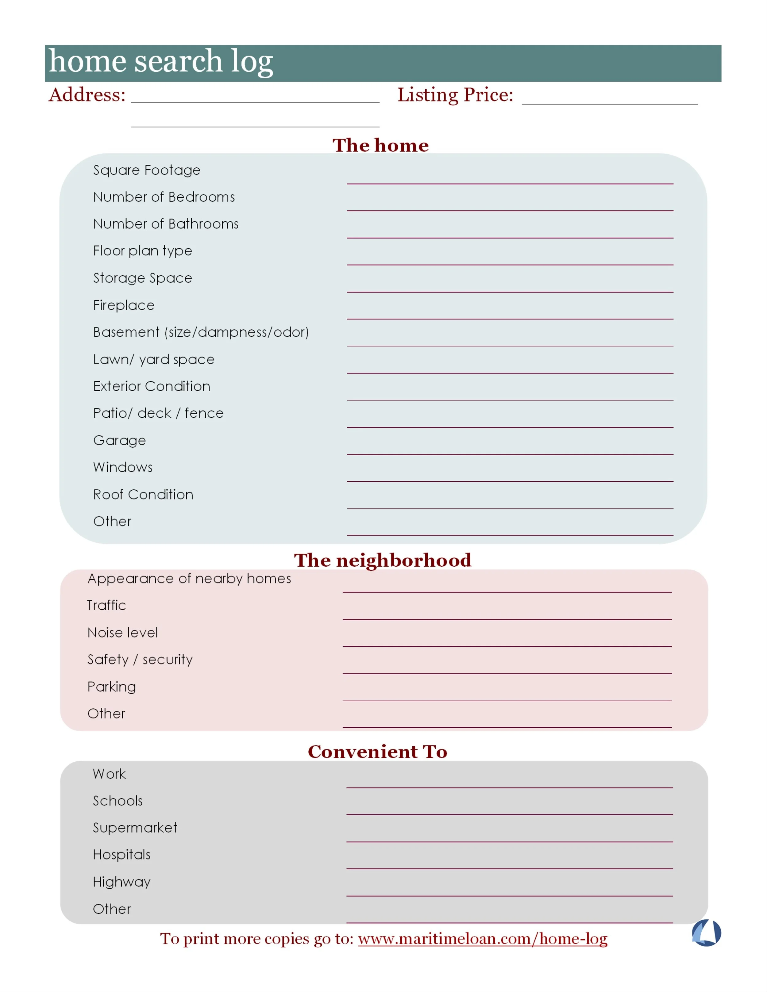 Click on the log or the download button to download this log. Use the log to help you stay organized while searching for homes.